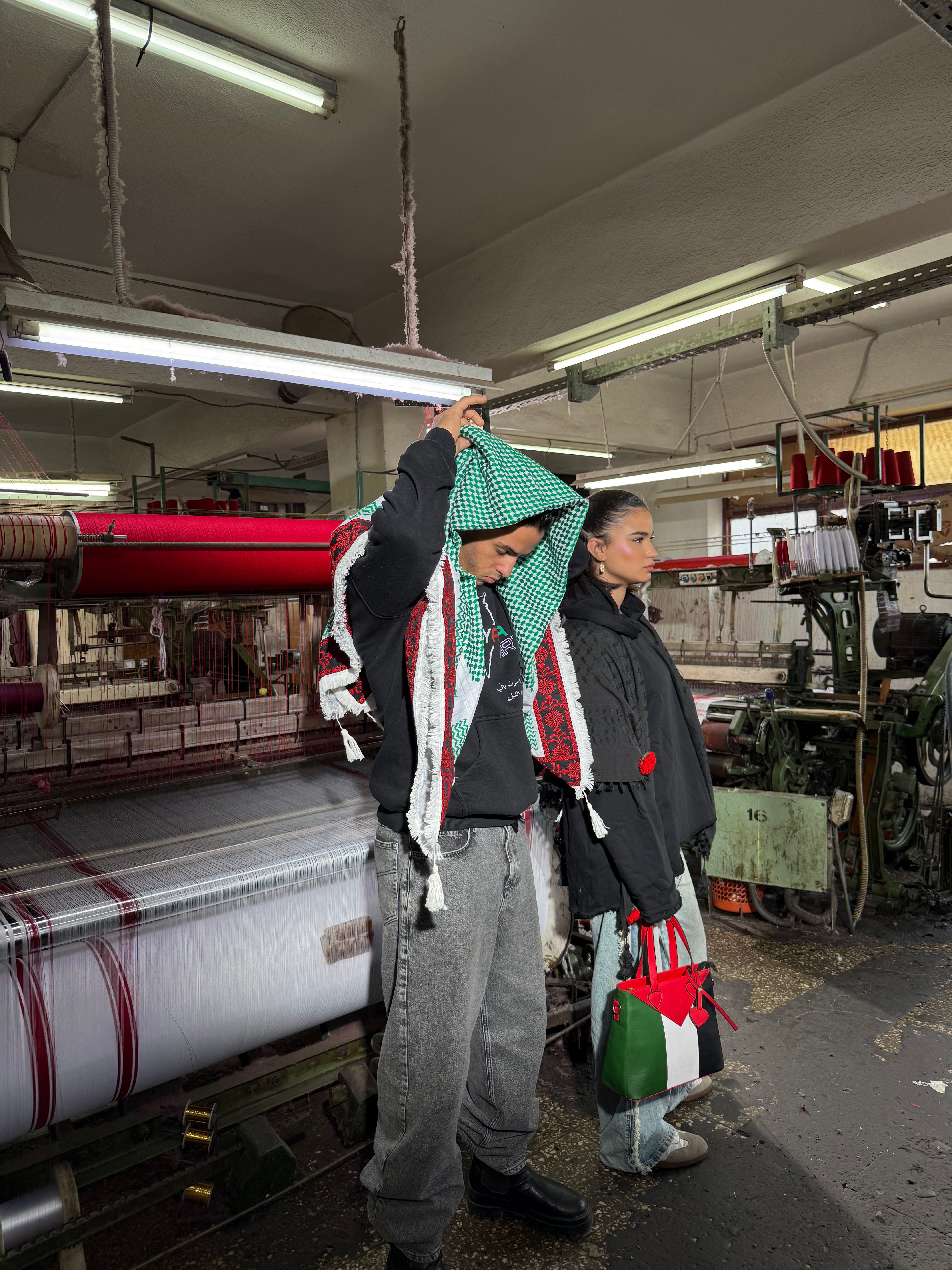 Step into a world where Palestinian heritage meets bold, modern design. From the iconic black-and-white kuffiyeh to statement-making apparel and accessories, every piece is crafted with purpose. Our creations aren’t just products — they’re symbols of resilience, identity, and pride. Whether you’re wrapping yourself in history, carrying it on your shoulder, or wearing it as a statement, you’re keeping a legacy alive with every purchase.